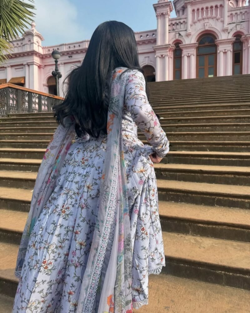 ডিজাইন: ডিজিটাল প্রিন্ট ও চায়না লেইসের কাজ