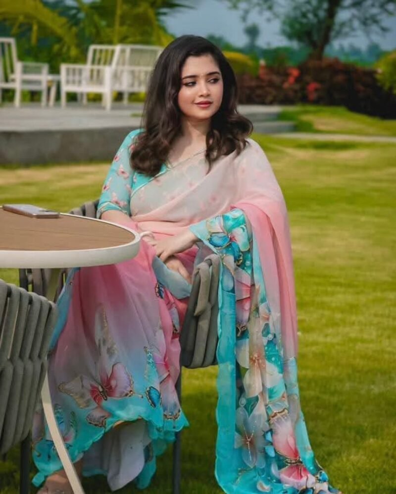 আধুনিক রুচির সাথে ঐতিহ্যের মেলবন্ধন ঘটিয়ে তৈরি এই মনোরম টপেটর সিল্ক শাড়িটি নিঃসন্দেহে নজর কাড়বে সবার। শাড়িটির সফট পিচ ও টারকোয়াজ ব্লু রঙের কম্বিনেশন একে দিয়েছে এক স্বপ্নিল সৌন্দর্য। সারা শাড়িজুড়ে ছড়িয়ে রয়েছে চোখ ধাঁধানো রঙিন বাটারফ্লাই প্রিন্ট, যা একে করে তুলেছে আরও আকর্ষণীয়।