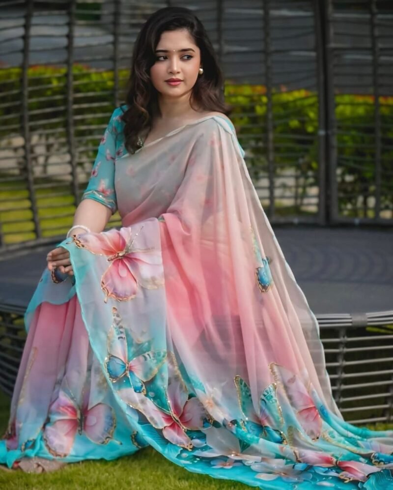 – ডিজাইন: ফুল ও প্রজাপতির নান্দনিক ডিজিটাল প্রিন্ট