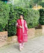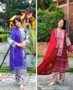 দুবাই সিল্ক কাপড়ে তৈরি প্রিমিয়াম থ্রি পিস। পুরো সেটে আছে আর্টিফিশিয়াল লেইছ, মিরর ওয়ার্ক এবং ফুল বডি ডিজিটাল ফ্রিন্ড কাজ। সম্পূর্ণ সেলাই করা রেডিমেড কালেকশন।