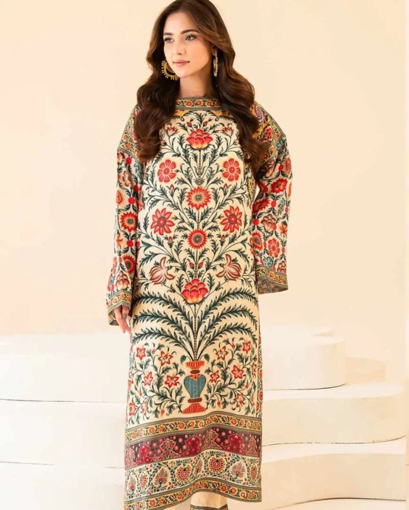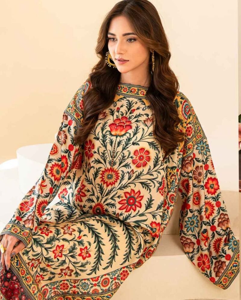 চেরি সিল্ক কাপড়ের ডিজিটাল প্রিন্ট রেডিমেড টু পিস।
