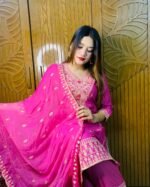 ওড়না চিকন জর্জেট এমব্রয়ডারি কাজ করা