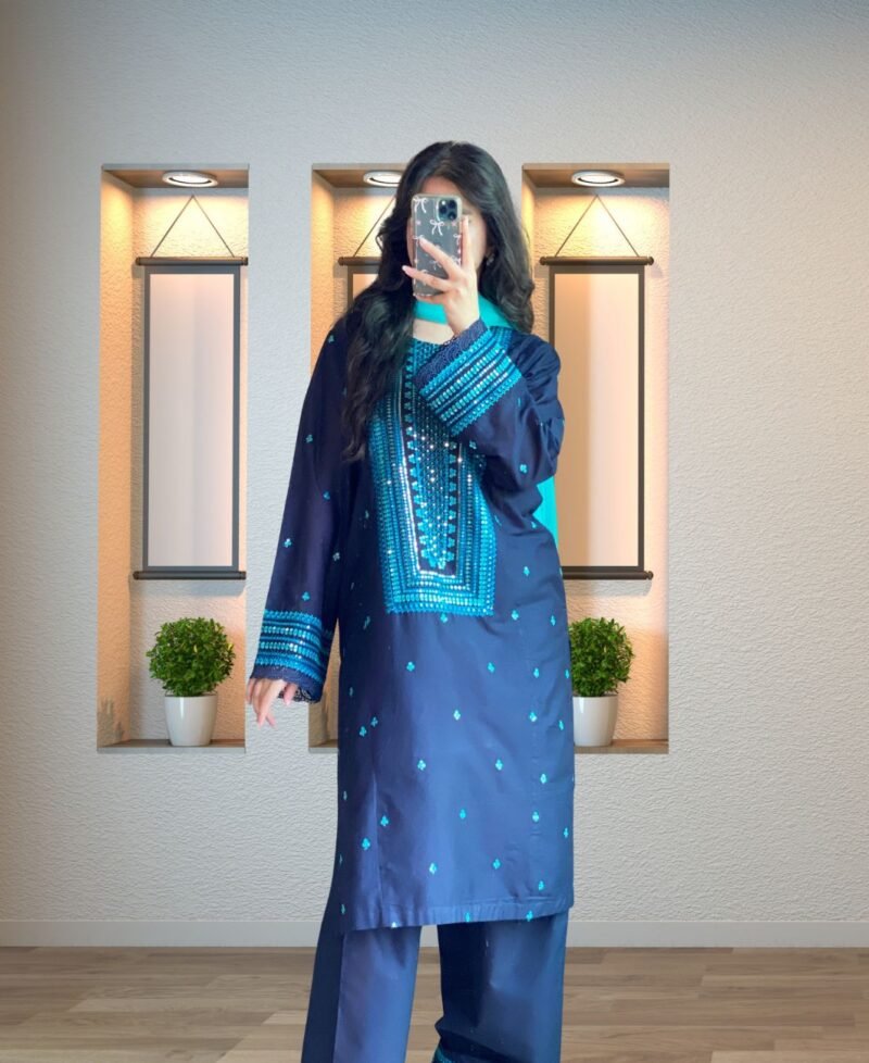Premium Quality Soft Cotton Sequence Embroidery Three Piece