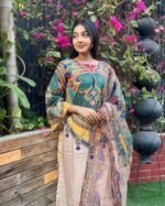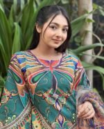 বর্তমানে মোস্ট ডিমান্ডিং চেরি সিল্ক কাপড়ের ডিজিটাল প্রিন্ট রেডিমেড থ্রি পিস।