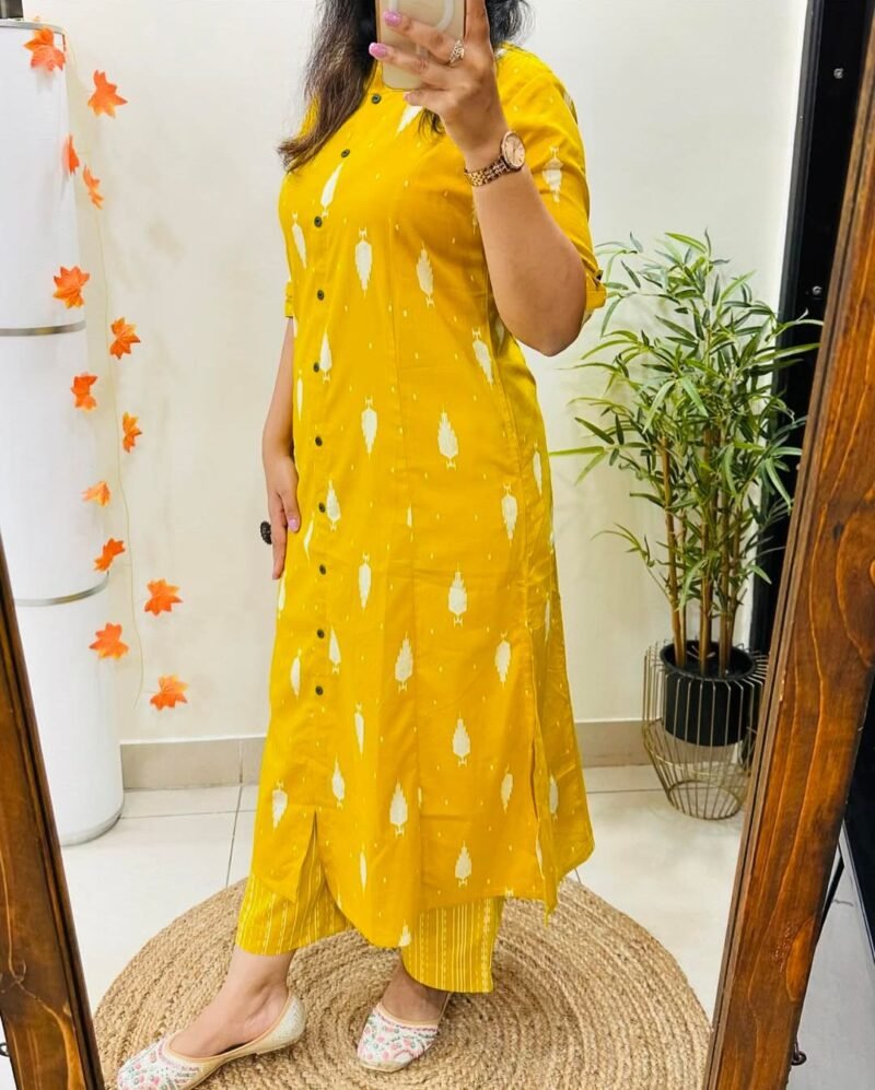 এই সুন্দরভাবে তৈরি স্কিন প্রিন্ট কটন টু-পিস কুর্তি এবং সালোয়ার সেট দিয়ে আপনার জাতিগত পোশাকটি আপগ্রেড করুন। নরম, শ্বাস-প্রশ্বাসের সুতি দিয়ে তৈরি, এই রেডি-টু-ওয়্যার পোশাকটি প্রতিদিনের পোশাক, নৈমিত্তিক বাইরে যাওয়া বা আধা-আনুষ্ঠানিক অনুষ্ঠানের জন্য উপযুক্ত। ত্বকের স্বর-অনুপ্রাণিত সূক্ষ্ম প্রিন্টটি মার্জিততার ছোঁয়া যোগ করে, অন্যদিকে হালকা ফ্যাব্রিক সারাদিনের আরাম নিশ্চিত করে।