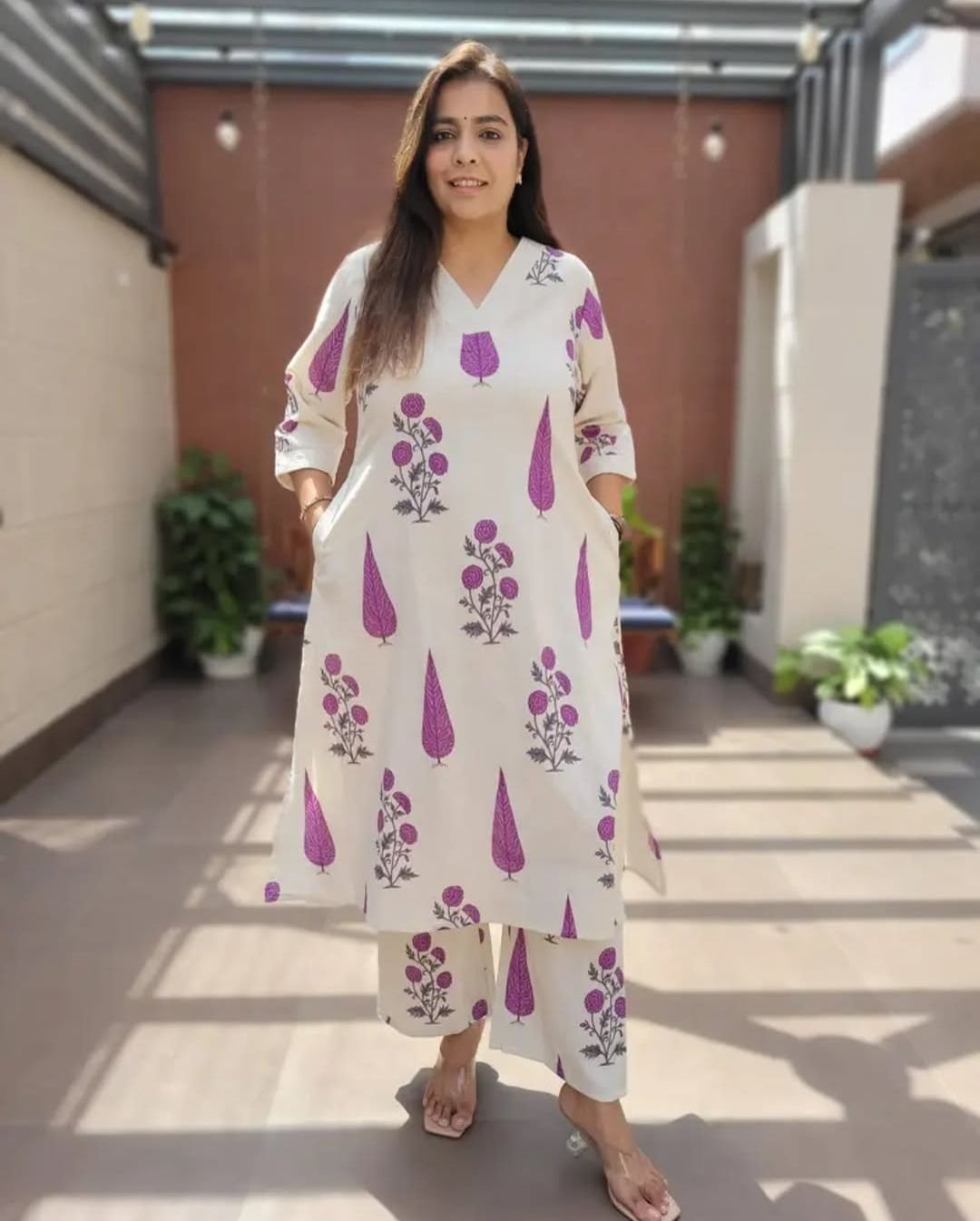 🧵 Skin Print Cotton Two Piece Set – Ready Made Kurti and Salwar 👗