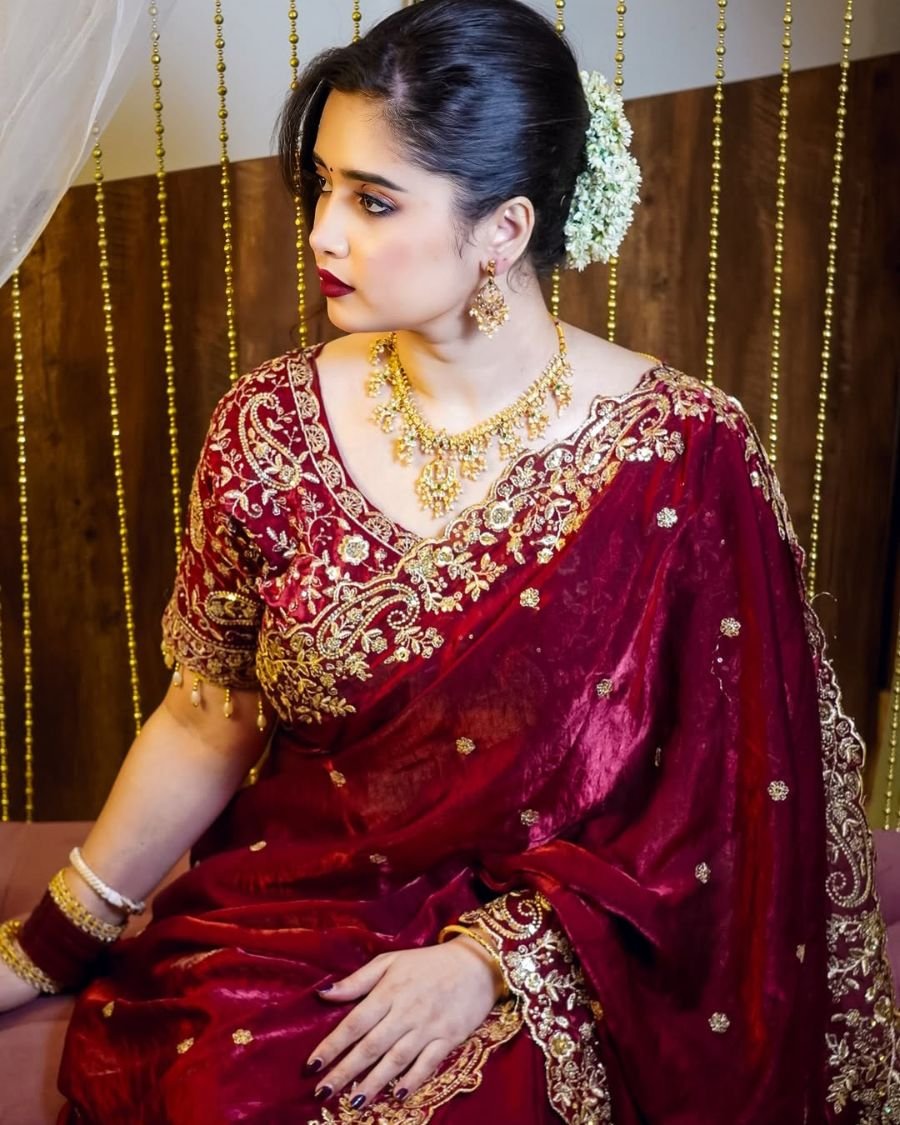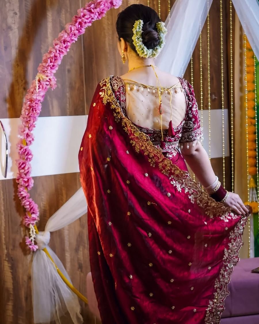 ব্লাউজ পিসেও হেভি এমব্রয়ডারি কাজ করা